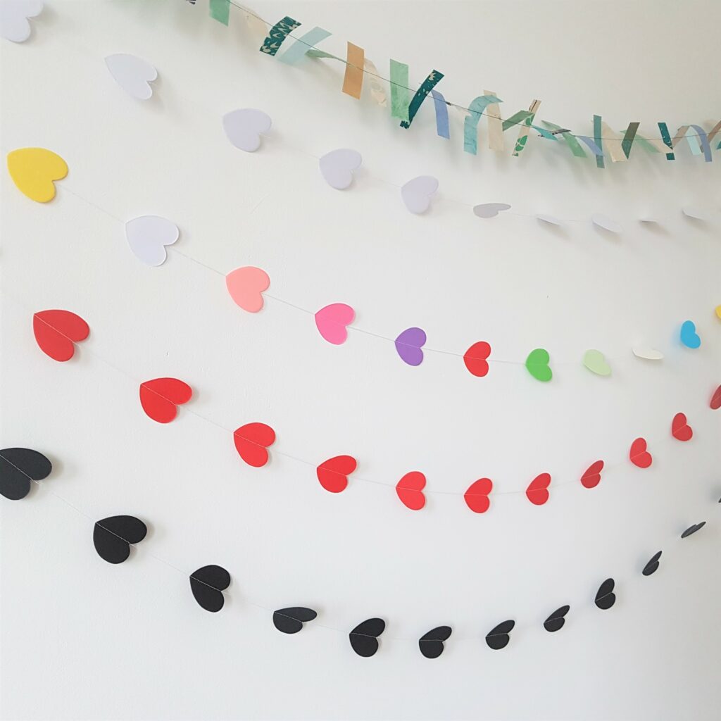 Verder heb ik deze week iets anders leuks gedaan: Monique van Happy Makers Blog deed een oproep voor de leukste Valentijnskaarten en ze nodigde makers uit om een kaarten in te sturen. Ik heb mijn nieuwe kaarten met hartjes ingestuurd en ik ben benieuwd of dat een vermelding op haar blog oplevert 😀 De kaarten (zie hierboven) staan inmiddels in de webshop en daar vind je ook de hartjesslingers. De slingers zijn 4 meter lang en kosten maar 5 euro per stuk; leuk om iemand mee te verrassen toch?